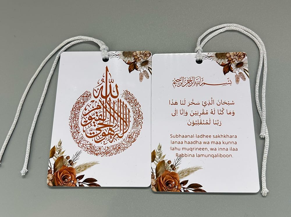 Featuring the powerful Ayatul Kursi and Safar (Travel) Dua, it serves as a constant reminder of Allah’s protection and blessings while you travel.