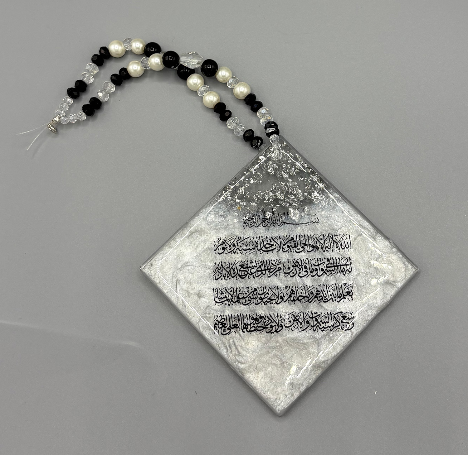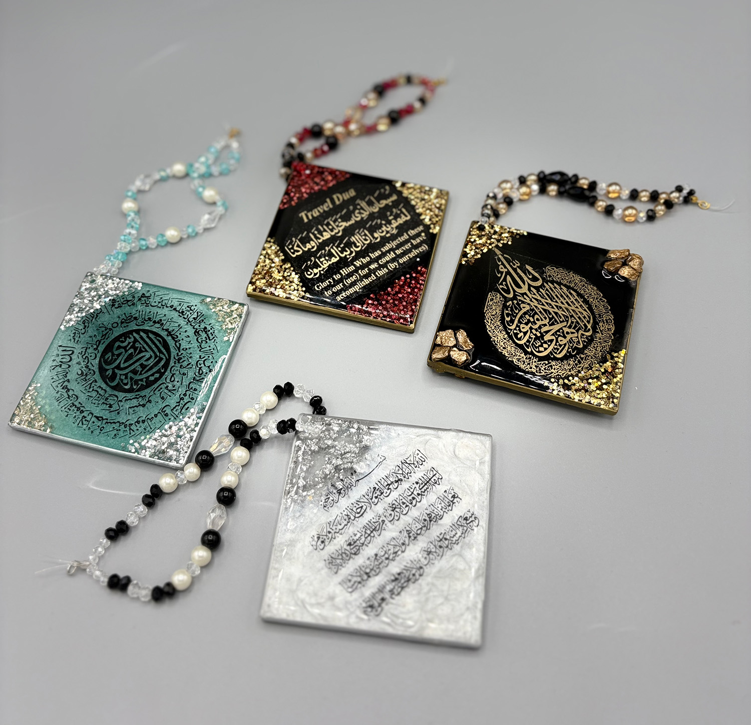Enhance your car or home décor with this Islamic Car Hanging Dua Set, a stunning collection of handcrafted resin ornaments inspired by faith and beauty. Each piece is carefully made with elegant Arabic calligraphy, displaying powerful Quranic verses such as Ayatul Kursi, Dua for Travel (Subhanalladhi Sakhkhara Lana…), and Allah Calligraphy.