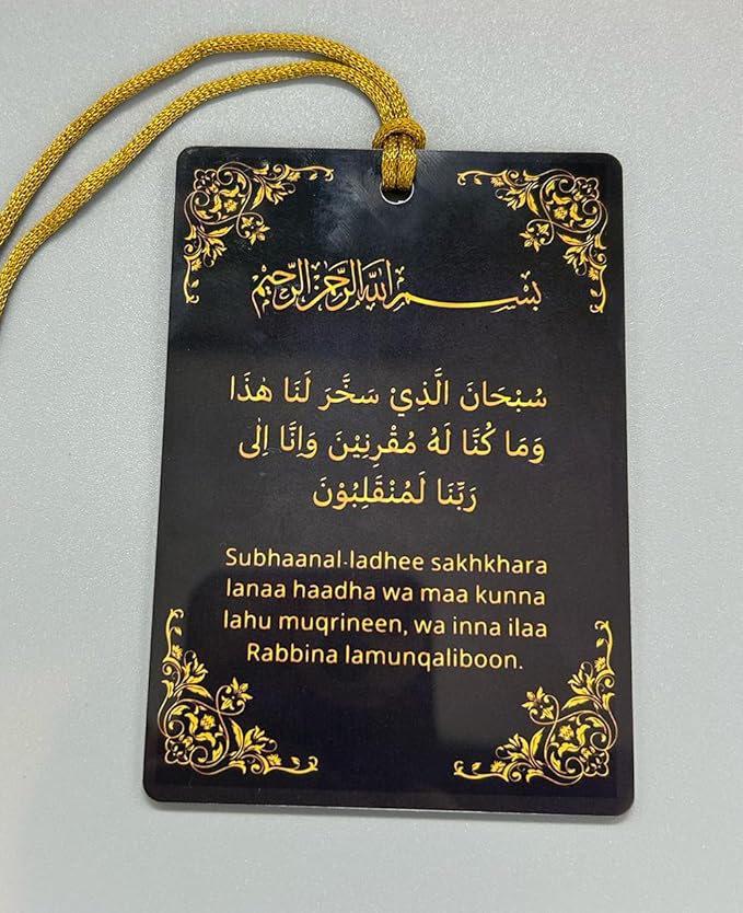 Bring a touch of spirituality to your vehicle with this Islamic car hanging featuring the powerful phrases ‘Ali Waali Allah’ and ‘Safar Dua’. Crafted as a rear-view mirror pendant, this Shia Imam accessory serves as a constant reminder of faith and protection during your journeys. Its elegant design complements any car interior, allowing you to express your beliefs while on the road. Measuring X cm in length, this pendant hangs gracefully, catching the eye without obstructing your view. Whether embarking on a long-distance trip or running daily errands, this Islamic car hanging provides a sense of serenity and divine guidance throughout your travels.