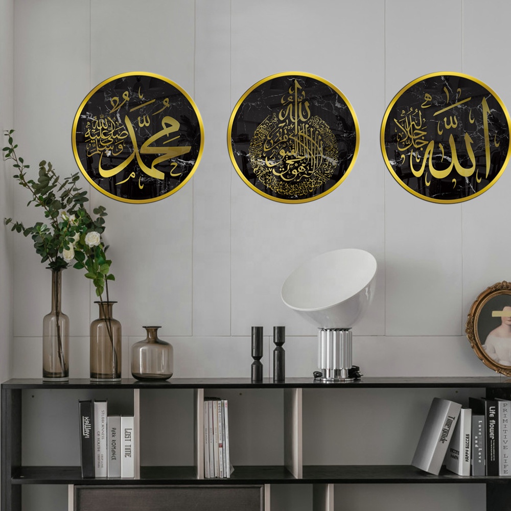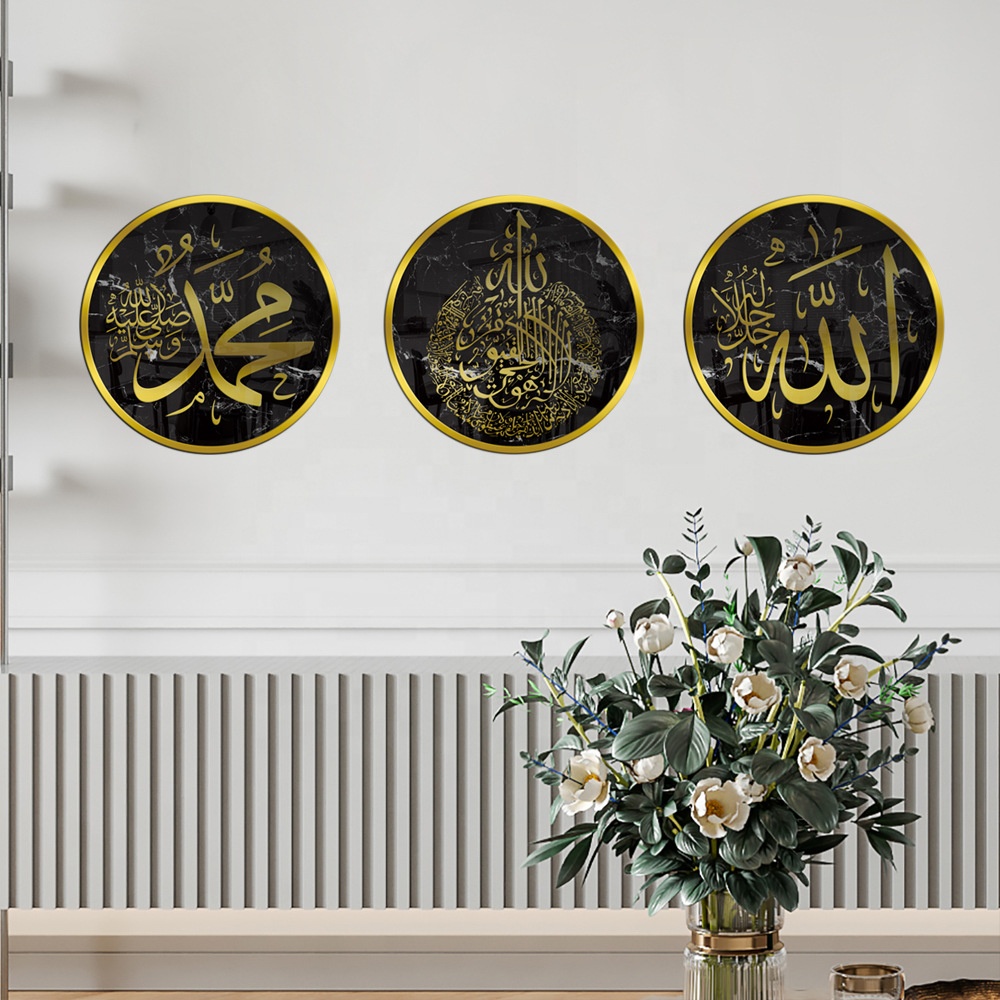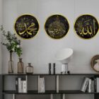 Each piece reflects deep Islamic meaning — Allah represents divine power, Muhammad (ﷺ) symbolizes guidance, and Ayatul Kursi brings protection and blessings. The combination of gold and black adds a timeless, modern elegance that complements both traditional and contemporary décor styles.