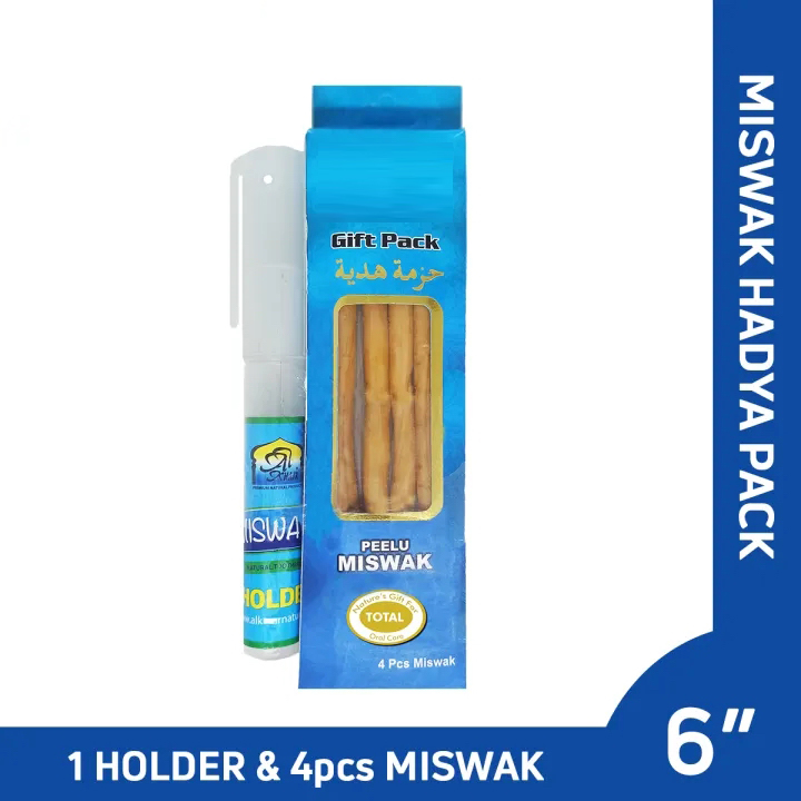 Embrace the Sunnah of oral care with the Miswak Gift Pack, a premium set designed for cleanliness, convenience, and faith. This complete bundle includes 4 natural Peelu Miswak sticks and 1 reusable holders, ensuring freshness and hygiene wherever you go.