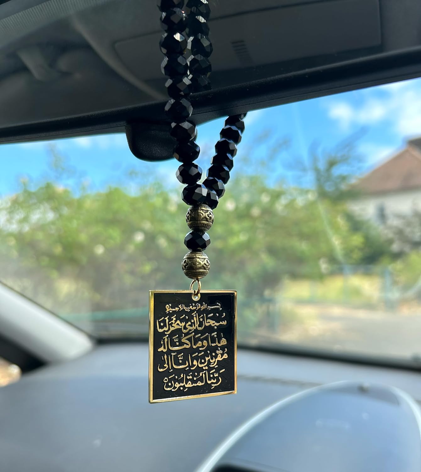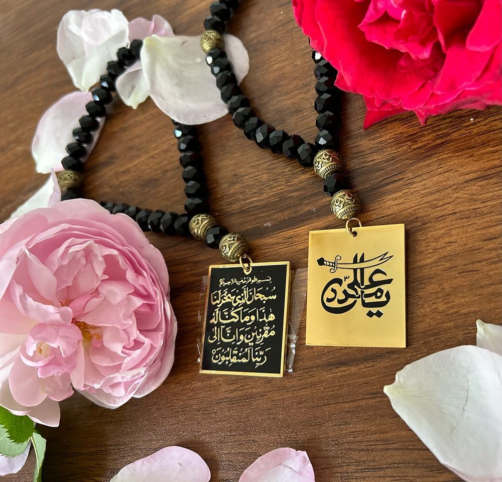 Add a touch of faith, style, and spiritual protection to your vehicle with the Ya Ali Madad & Safar Duaa Car Hanging. Featuring a beautiful gold and black patterned design, this unique Shia Islamic accessory includes the heartfelt Ya Ali Madad call, the Safar (Travel) Dua, and 33 prayer beads for on-the-go tasbeeh.